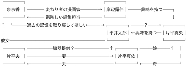 その真相を探っていく中で、真央の父で真依の夫である央(奥野瑛太)が交通事故で亡くなり、臓器提供をしていた。そして同じ時期に瀕死だった太郎も臓器提供を受けていたことがわかる。そこで、おそらく央の臓器が太郎に提供されたのだろうという話に。